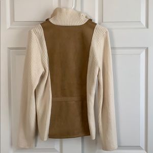 Sweater material with soft brown material down front and back