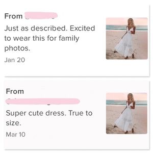 @xo4esh I'm sorry for the confusion. It might be the way the picture was taken in the first photo. It doesn't look like your buttons. Haha but then the last picture you see it pretty good so I didn't know if it was two different ones it's just similar to what the model is wearing and some people do that try to find a photo that similar to the dress they're selling so I didn't know if it was the exact same dress that the blond is wearing