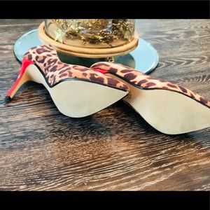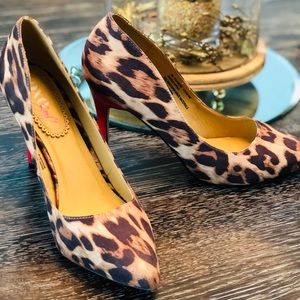 These Leopard print STATEMENT heels are sooo cute!! Worn a handful of times with normal signs of wear. Color- dark brown, brown, light brown with bright red heels. Insoles have factory padding for comfort. Ask me questions and make me an offer 😊
