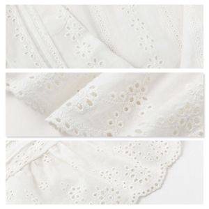 White Eyelet Ruffle Detail V-Neck Buttoned Top