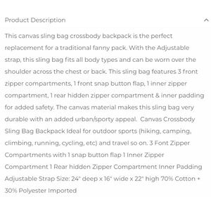 NWT - CANVAS MULTI ZIPPER SLING/CRSSBDYBACKPACK
