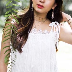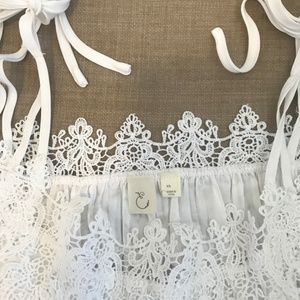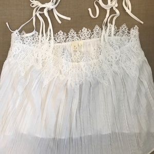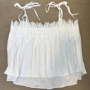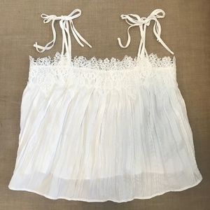 Stunning white top with floral embroidery detail and adjustable shoulder tie straps. Excellent condition.