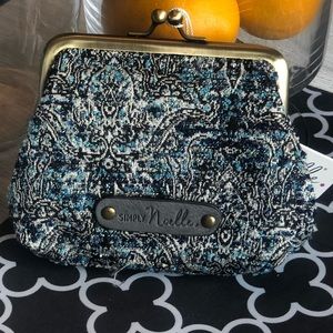 Tapestry details make this a very versatile item to switch from purse to purse. Holds credit cards or ids and opens up to be very roomy for any need. Tapestry on this one is blackish grey and blue w metallic threads subtle throughout. See other pics ! If this doesn’t sell by 8/14 I am keeping as my own birthday gift ! I have wanted this one and it is discontinued now! Get it while it’s still here or 8/14 it’s gone!