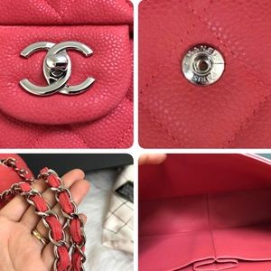Authentic Chanel Caviar Suede Classic Jumbo Double Flap Silver Hardware in excellent condition. The color is so pretty. Perfect on any occasion. Very good shape with light signs of use. The button was a little crack but still useable as usual (totally fine).