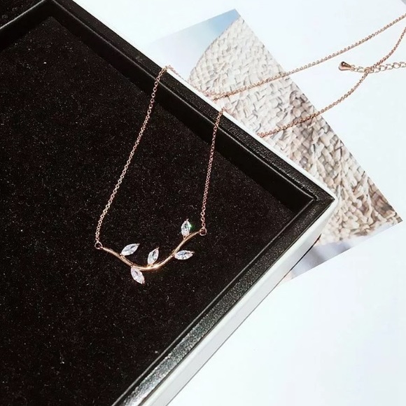 Rose Gold Leaf & Branch Marquise Diamond Necklace