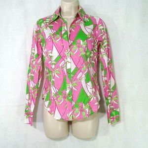 Lilly Pulitzer Blouse Top Women Size 0 Pink Green