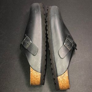 38 Leather & Cork Birkenstock Boston Clogs Black Waxy Leather 38 7-7.5
