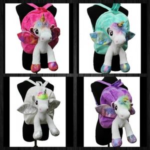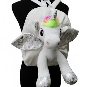 3D unicorn backpack, school, snacks, bag, purse, carry-all. Comes in assorted colors. Pink, Purple, Hot pink, White, Mint green. Measurements shown in photo.