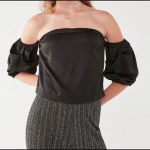 Black urban outfitters off the shoulder satin top! Super cute fits a S/M ! NEW WITH TAGS