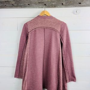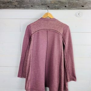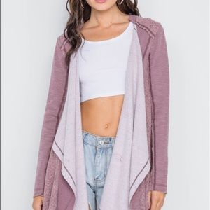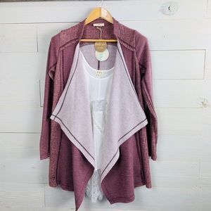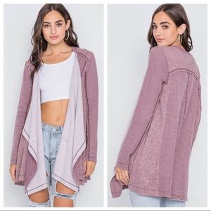 Cardigan features: long sleeves, draped front, trapeze hem, open front