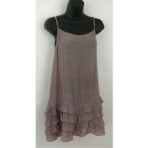 Easel Lilac Purple Spaghetti Strap Crinkle Tiered Flowy Ruffle Dress Womens Sz S in excellent pre-owned condition.