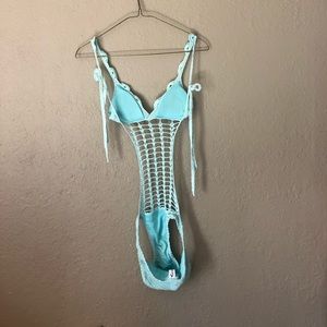 Good condition wore once may have some snags I’m not aware off size XS light blue color has lightly lined padding I did post a similar monokini how it would kinda look on please note it’s not the same as the one I have pictured