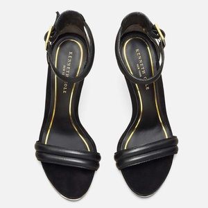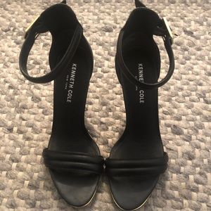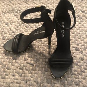 Black, simple ankle and front strap, gold detail, worn once great condition
