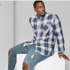 Original use plaid button down-fighter pilot blue