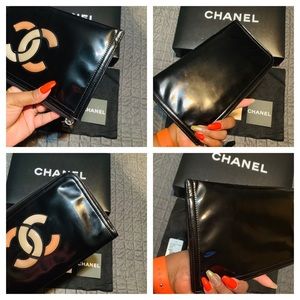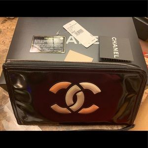 In great condition large size with wristlet strap. Comes with box, tag, card, felt cloth and care booklet. Has some rubs/wear on corners/edges or the bag. Doesn’t take away from the beauty. Not really noticeable