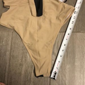NWT cut out swimsuit Camel & black cut out halter bikini gold square buckle M