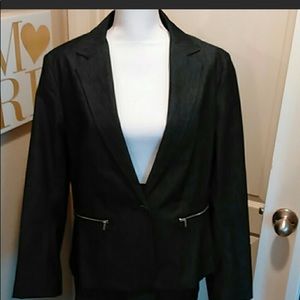 New York & Co denim Blazer with one button to define your waist. Zipper accents on closed pockets. Casual Friday at its best.