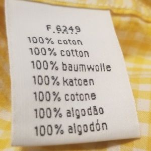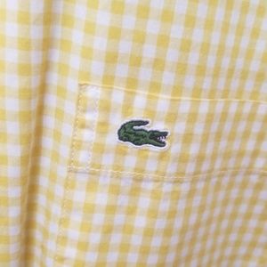 Lacoste size 42 Mens Large Yellow and white mens 42 long sleeve button up shirt. Never worn. Purchased from Zappos. Designed in Fance. Made in Peru.100% cotton.