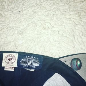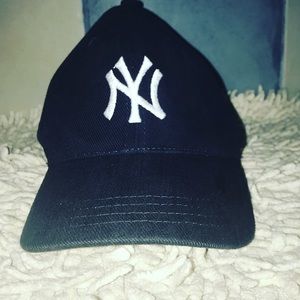 @karrieklangan thanks for your interest! The hat has not been used but was purchased new a few years ago. Since it was not kept in its cardboard hat insert the right side slightly bends inward. The visor of the hat and strap are in perfect condition. If you would like I can also create a bundle with a woman’s small navy Yankees shirt and/ or a baseball glove. Let me know if you have any more questions!