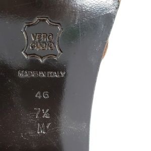 I ❤ these shoes and was so excited when I saw them in a recent estate lot I purchased, especially seeing they were my size. However they run small, these are a size 7.5, but are meant for a size 7. They are a beautiful and unique suede leather patched shoe with statement stacked heel. I am on the search for a size 8 to have a pair myself. In great pre-loved condition. Minor wear on leather sole. Comes with original box if shipping box allows.