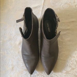 Super cute gray-brown ankle boots from Nine West. Size 8.5. Worn a handful of times. Minor scuffs on the toes from me tripping over my own feet 😂 (last photo)