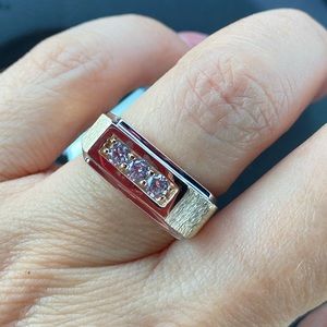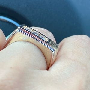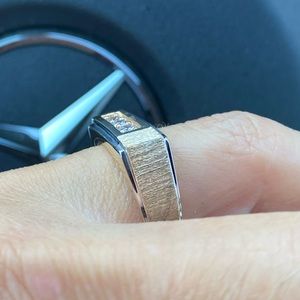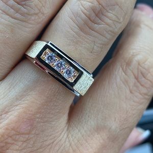 Mens Square Engagement Ring Wedding Band Solid 14k Yellow Gold Band with A% High Quality CZ , Satin Polished Fancy Ring Band