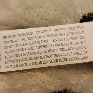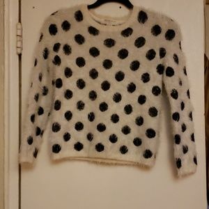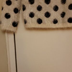 Long sleeve black and white polka dot top. 78% nylonpolyamide, 22% acrylic. CN 140/75. Made in China.