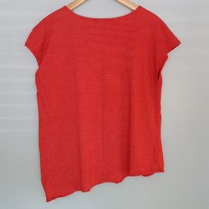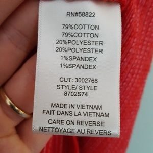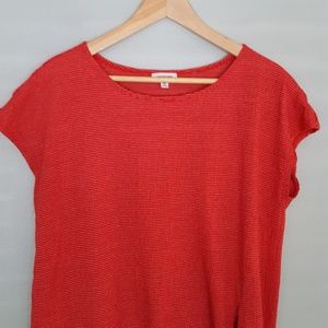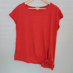 Excellent used condition red and white micro stripe tee from Max Studio features cap sleeves, boat neck and side tie. Asymmetrical hemline. Made of lightweight and breathable fabric (79% cotton, 20% polyester, 1% spandex). Women's size XL