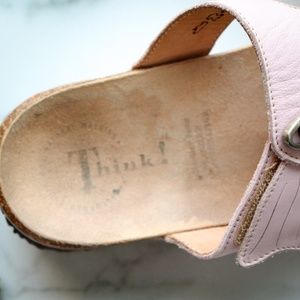 THINK! Mizzi face sandal leather cork pink slide.