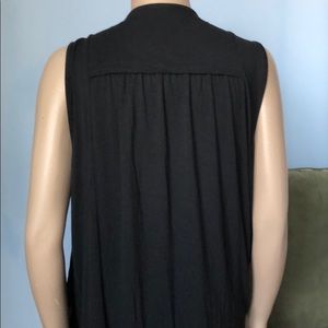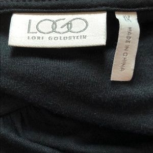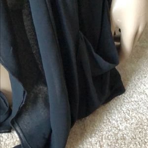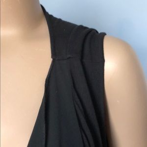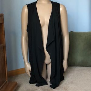 Logo by Lori Goldstein Sleeveless Black Chiffon Draped cardigan. This cardigan has side pockets as pictured. This cardigan is in like new used condition.