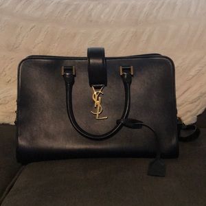 Authentic YSL purse in black. Comes with shoulder strap. Hardly used, minimal scratches on hardware. Leather with gold hardware. 14 in x 9in x 7 in
