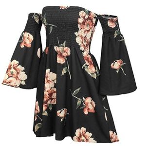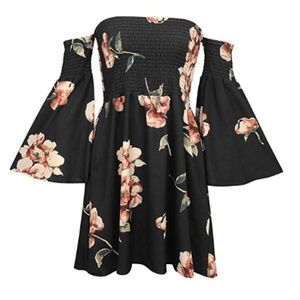 Women's Floral Long Sleeve Off Shoulder Mini Dress