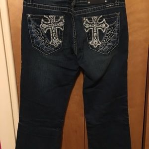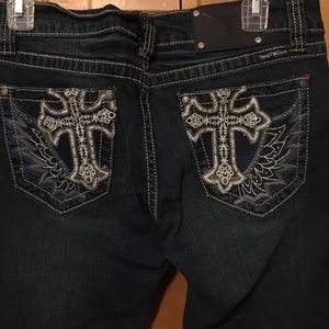 Lots of bling front and back pockets have crosses. Smoke free, beautiful details