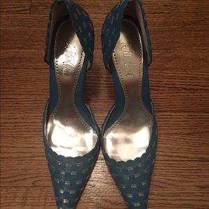 These are hot!!! 🔥 Size 9. Blue with silver accent and wood heel. Only worn once.