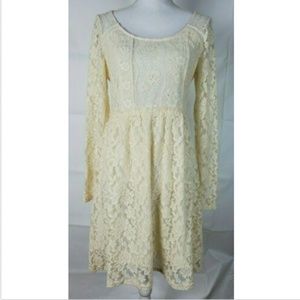 Miss Me Dress M Lace sheer Cream Stretch BOHO