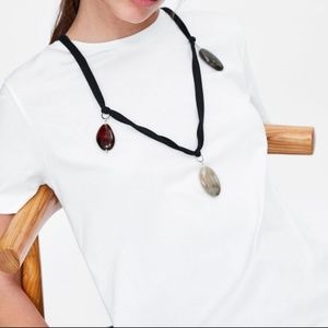 Zara White short sleeve tee with necklace attached Med. Casual Festival All-in-1