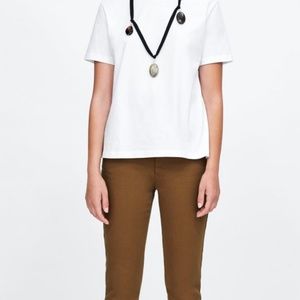 *Basic Zara short sleeve white tee, but this necklace comes attached!👚📿...100% cotton... be sure to look at all the pictures📸 measurements are shown in the photos...tu#9