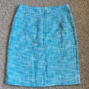 Women’s Banana Republic tweed pencil skirt in a pretty bright blue color. Back zipper with clasp. Lined.