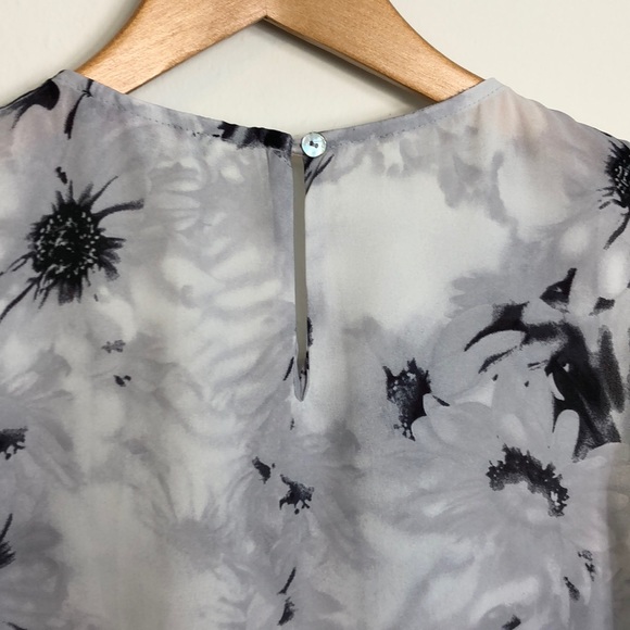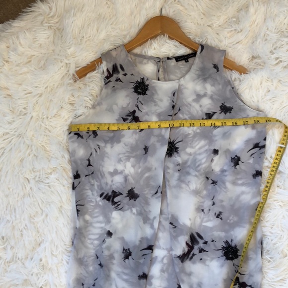This beautiful floral sleeveless top is perfect for layering or where in alone. It’s a 100% polyester and machine washable. It has a unique surplus front and side slit hem.