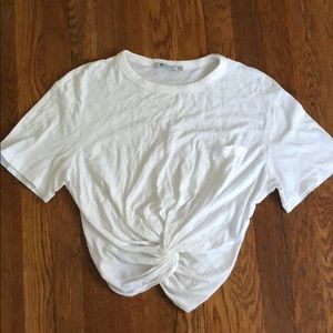 Never worn Alexander Wang simple cropped white T-shirt. Pocket on the front and twist detail on the bottom. Small elastic band on the back bottom. No longer sold in stores!