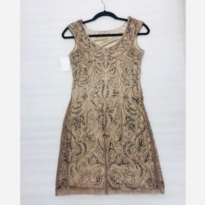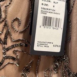 Adrianna Papell beaded nude mesh sheath dress