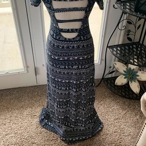 Backless Black Aztec Maxi Dress