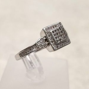 Sterling Square Pave Ring
