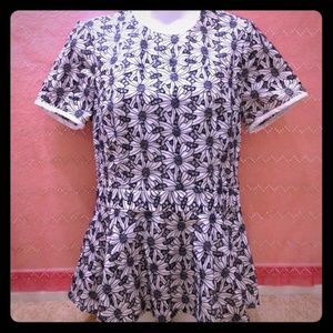 MK Michael Kors True Navy & White Sunflower Floral Peplum Top