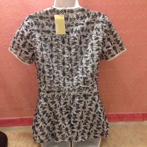 MK Michael Kors True Navy White Floral Peplum Top
