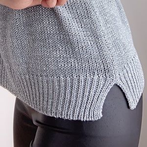 Beautiful knitted top. Metallic infused thread . The top has a sparkle to it. Dusty blue gray color with a hint of silver glitters.