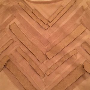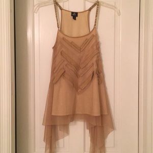 Neutral tan color Lined sheer top with braided straps. Uneven - shark bite hem