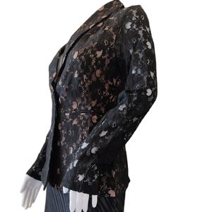 Esley Collection, two tone blazer. The Outer part is a black lace beautifully displaying the inner material in a tan tone.