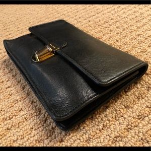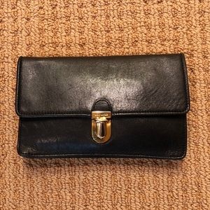 Marc Jacobs black leather clutch w/gold clasp