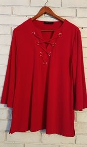 Beautiful top with lace up front. I believe it would fit a medium or large no tag measurements below laying flat.